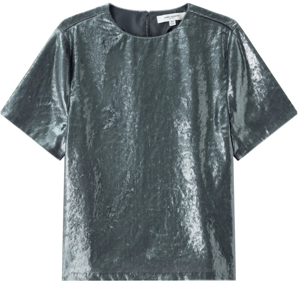 If you want to nod more directly to the show’s actual spacesuit aesthetic — and lean into Lost in Space fashion more literally — two pieces feel very on-trend for 2026: a metallic silver top from Janet Howard New York and a pair of sleek, plated silver jeans (currently on final sale at Joe’s Jeans).